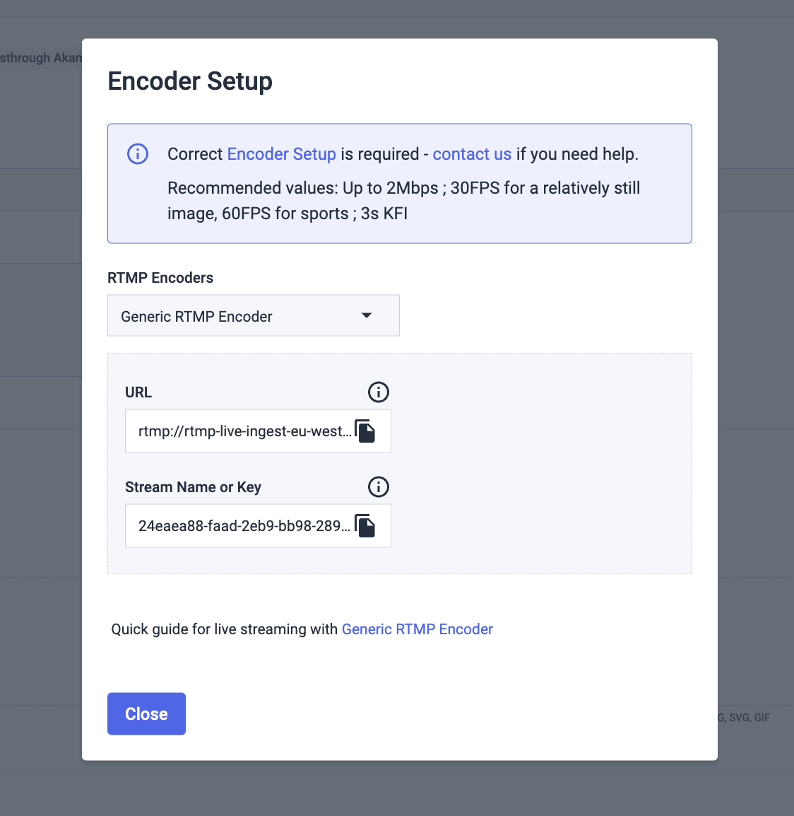 When configuring the encoder, all you need to do is enter the information provided from the Encoder Setup window.